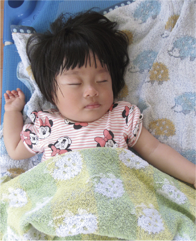 個々にベッドやコットを用意しています。眠りの空間は、眠っている子が遊んでいる子に邪魔されることがないように、一人ひとりのコットで眠っています。原則として一年間眠る場所を同じにすることで安心して眠ることができます。